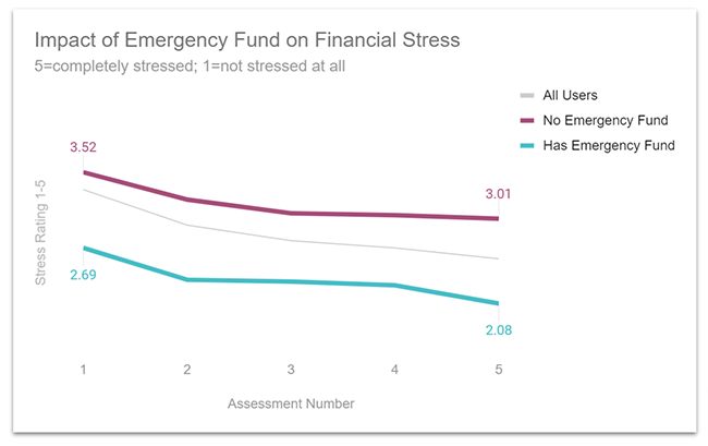 Enrich data shows that using the financial wellness program increases the likelihood of having an emergency fund by 27%. Plus, having such a fund decreases stress.