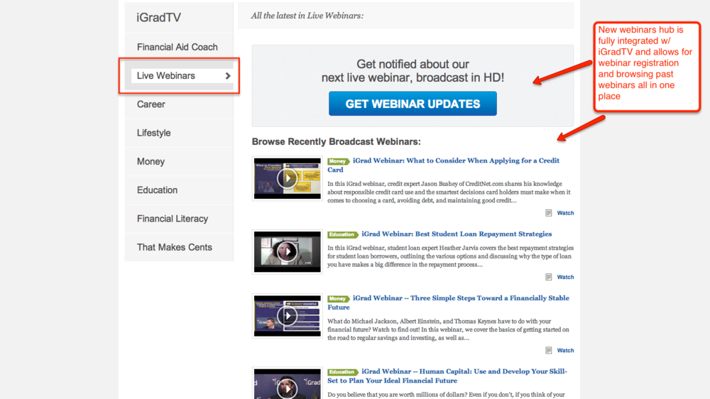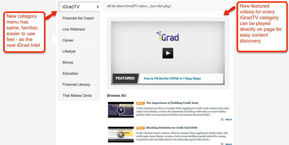 We revamped it all – be sure to visit the new iGradTV and share your thoughts. Here’s the highlights: