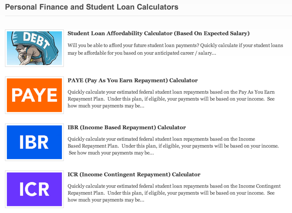 We’ve added four new student loan repayment calculators to our calculator hub. You can access all of our calculators from the Financial Literacy HQ page. Check out our four new ones: