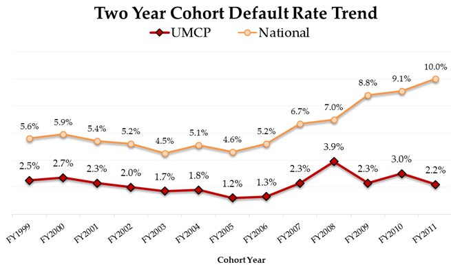 One of the most eye-opening parts of the presentation was seeing the short term results of these proactive solutions on UMCP’s student loan default rate. In 2009, when the national default rate rose a staggering 1.8% (the largest increase since 1989), UMCP’s default rate actually decreased by 1.6%!