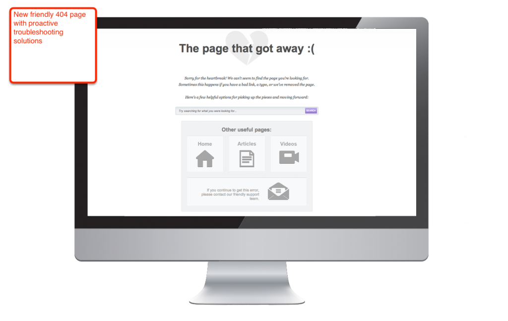 We’ve got brand new error pages (for the rare circumstance when a user may get an error or may receive a bad link) that are friendly, integrated with the site, and provide direct assistance for the issue the user is encountering.
