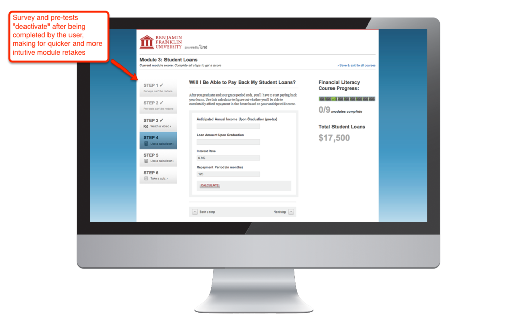 We’re constantly working on our module platform to ensure it’s the best available. We’ve improved the module step panel to be easier and more intuitive for users moving between module steps, including back button navigation, direct navigation to a step via the step panel, and visual indicators for which steps have been completed.