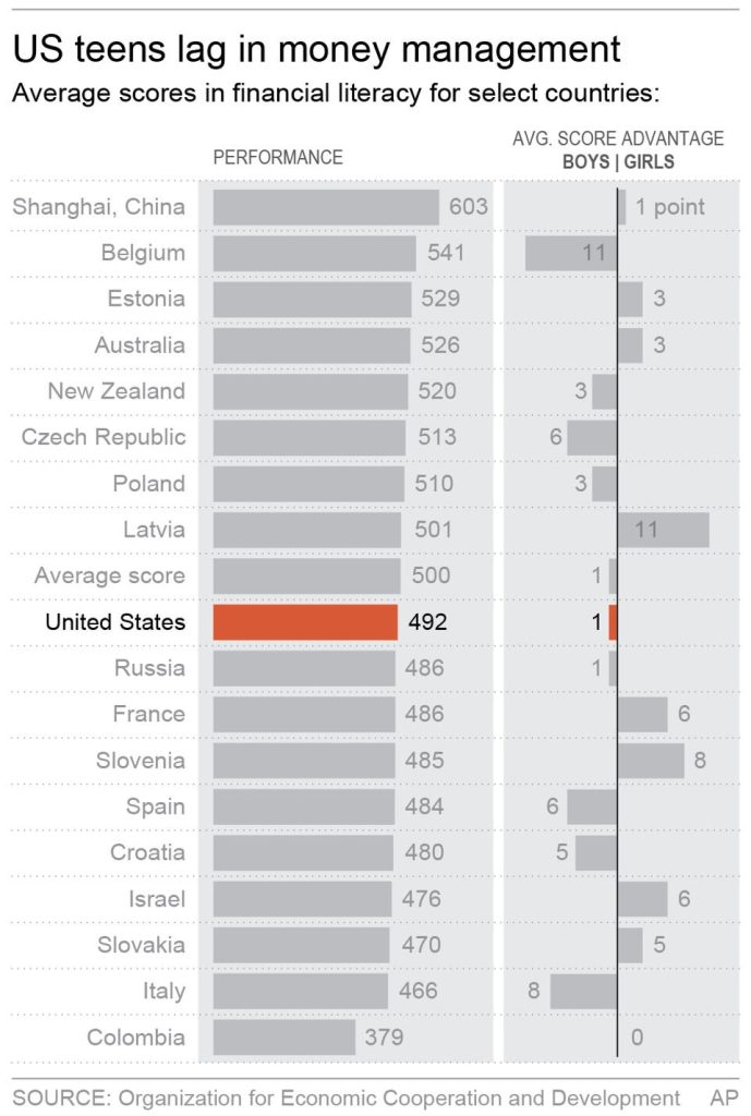 Yet despite this knowledge, the financial literacy scores for U.S. students ranked internationally remain average, and a bit below average at that. Here are some highlights from the PISA assessment: